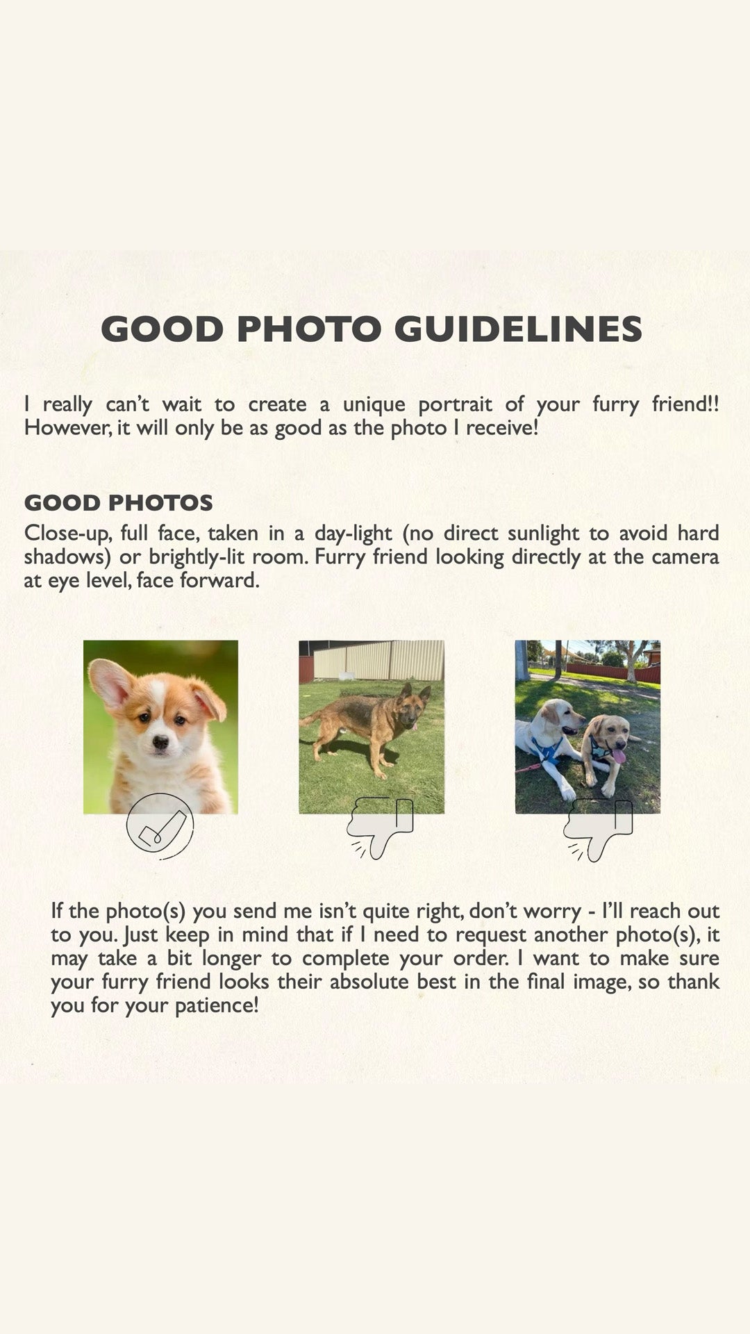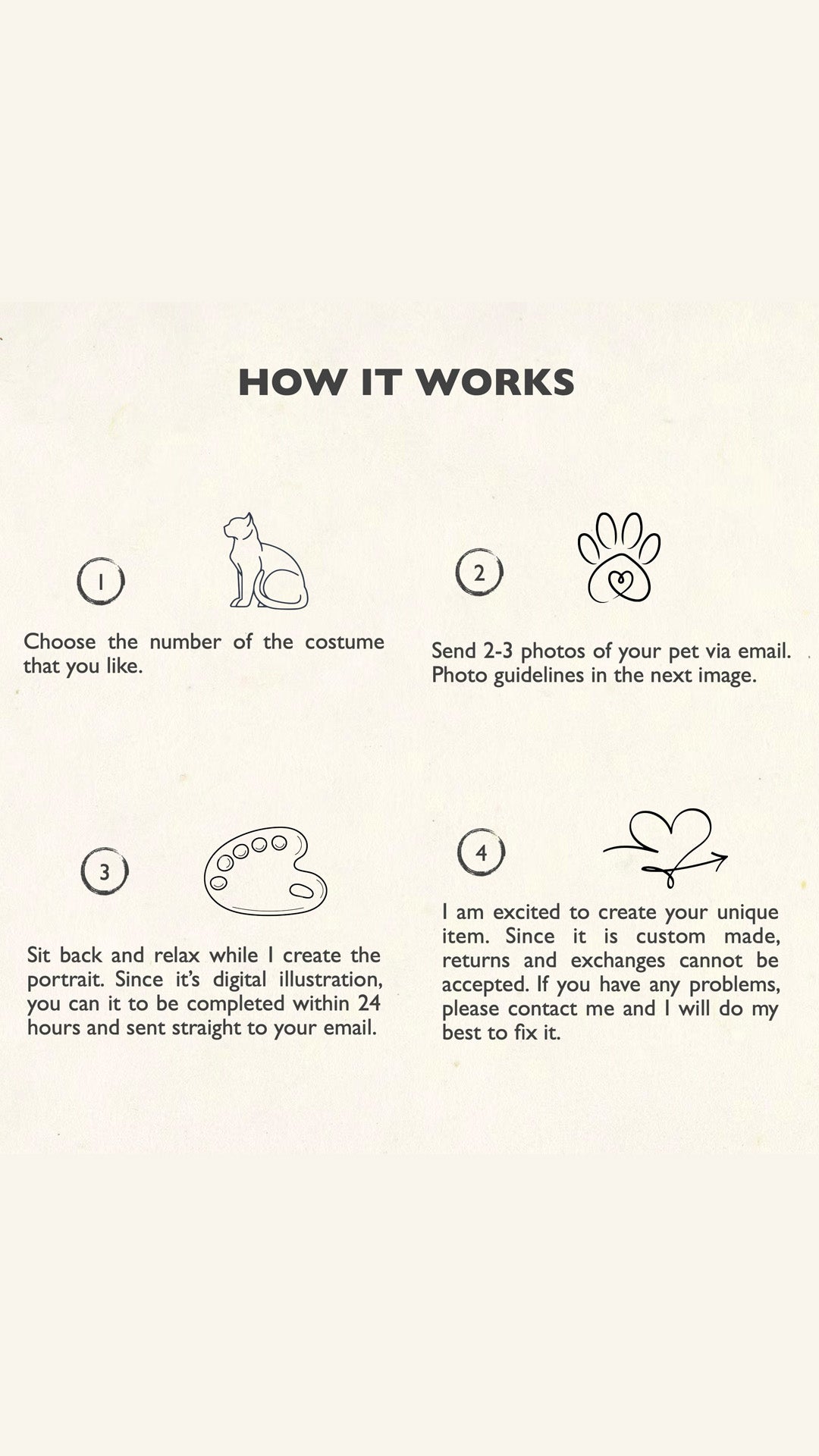 1. Upload a clear, high-quality photo of your pet after purchase or email it to hello@bepexvisuals.com (front-facing photos work best for royal poses!).