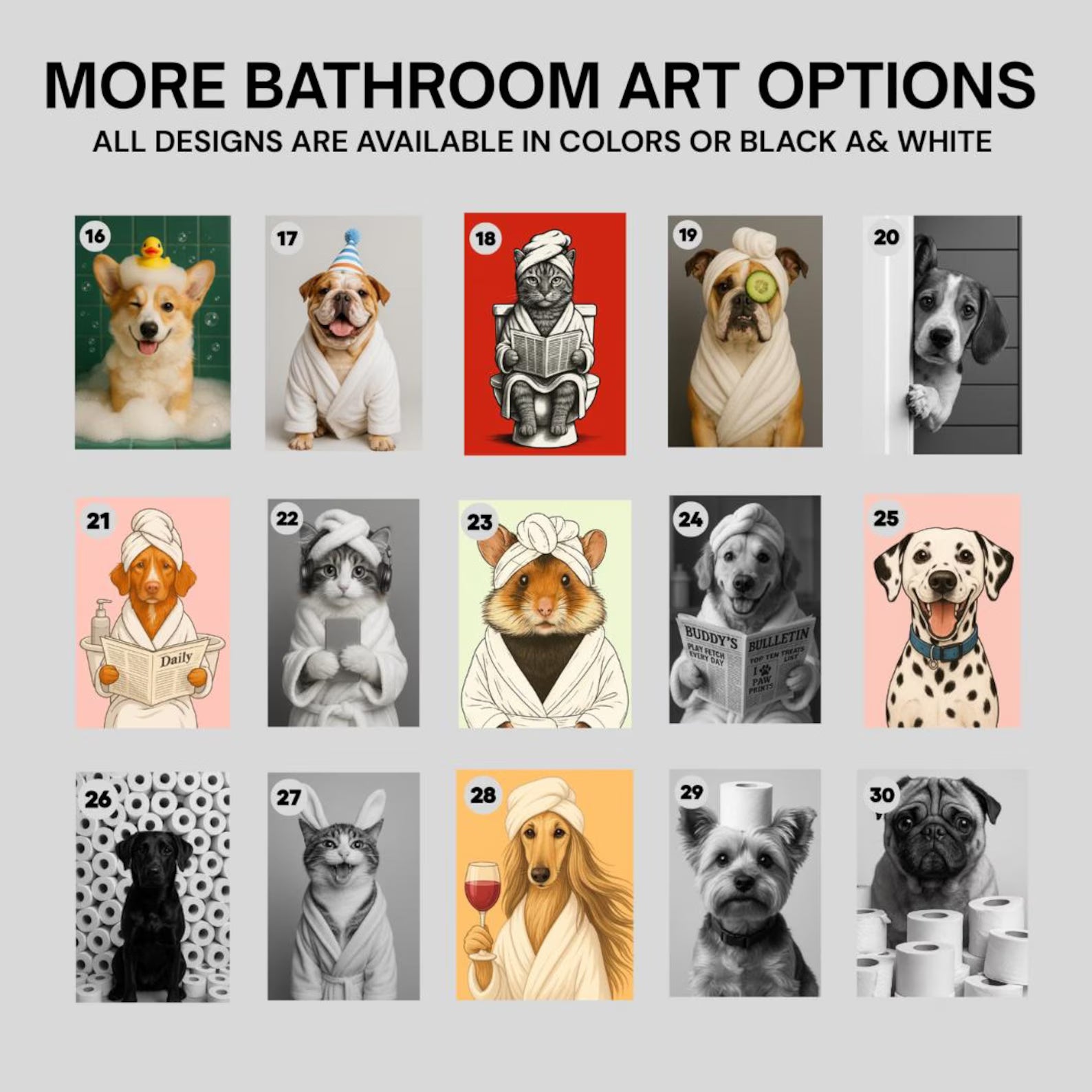 Turn your furry friend into a masterpiece with our hilarious “Pet in the Bathroom” portrait! Whether you want your dog chilling in the tub or your cat posing next to the mirror, we’ll transform your photo into a fun, personalized artwork that will make everyone smile.
